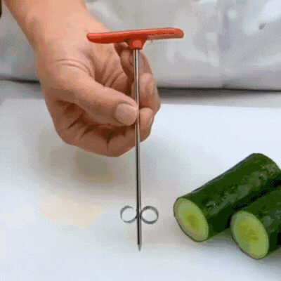 Progettato con un meccanismo a vite, questo utensile trasforma facilmente frutta e verdura in spirali divertenti e decorative
