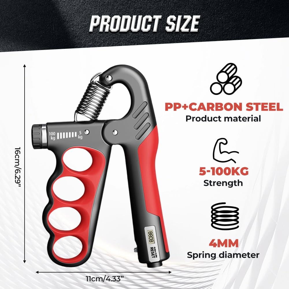 Da 11 a 220 lbs (5–100 kg), la manopola regolabile ti consente di personalizzare la resistenza in base ai tuoi obiettivi. Che tu sia un principiante o un atleta esperto, questo allenatore di presa si adatta alla tua forza in evoluzione.