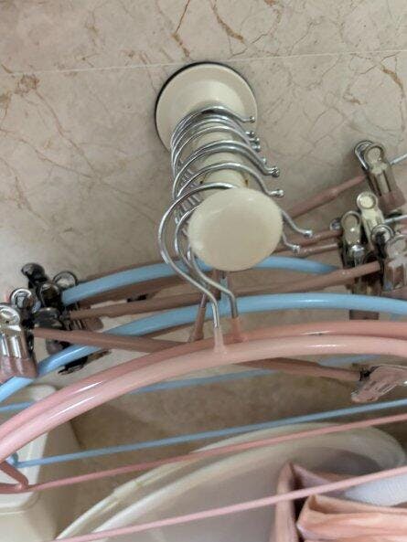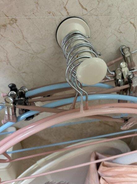 Estremamente comodo! Non dovrai più correre a cercare grucce per stendere i panni. Le ventose sono mobili e non occupano molto spazio quando non vengono utilizzate. Altamente consigliato!