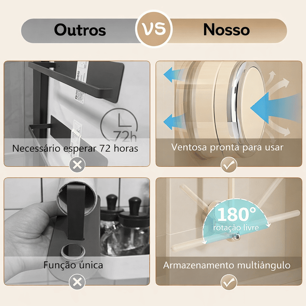 Monta questo portaoggetti all’istante su qualsiasi superficie liscia grazie alla potente tecnologia a ventosa, senza attrezzi né danni!