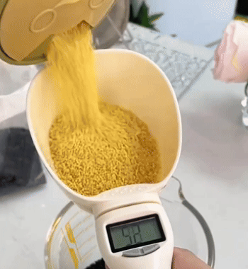 Ideale per misurare sia ingredienti solidi che liquidi come cibo per animali, acqua, ecc. È comodo per dosare il cibo per animali (cani, gatti, uccelli, ecc.) e perfino per misurare gli ingredienti durante la cucina o la preparazione di dolci, soddisfacendo le tue varie esigenze