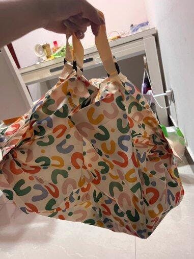 Borsa leggera ed ecologica, si adatta alle dimensioni del palmo della mano quando è piegata ed è facile da aprire, è estremamente comoda da usare per fare shopping o per uscire.