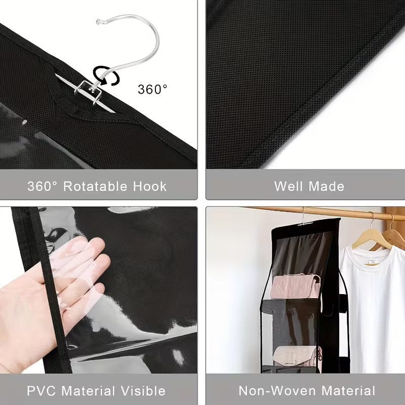Chiaro e facile da trovare: questo organizer da armadio per borse ha una finestra trasparente che consente una facile identificazione del contenuto.