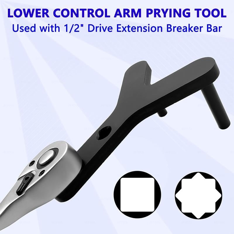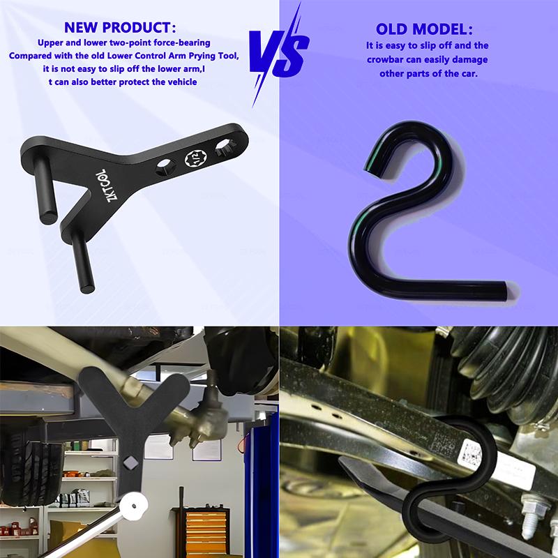 Facile da usare e non danneggia altre parti dell’auto durante il processo di riparazione. Adotta un design con doppio punto di forza superiore e inferiore, che rispetto al vecchio attrezzo di leva del braccio di controllo inferiore non scivola facilmente dal braccio inferiore.