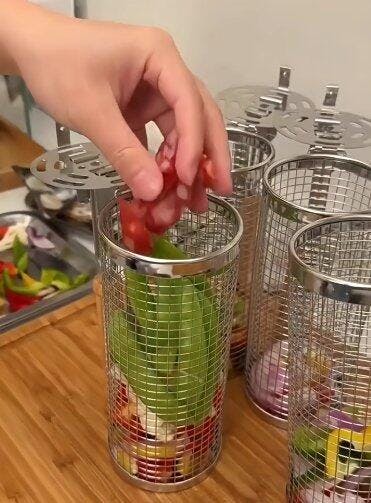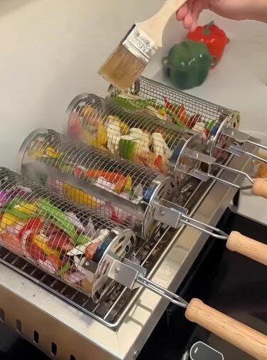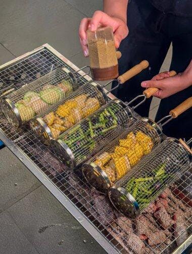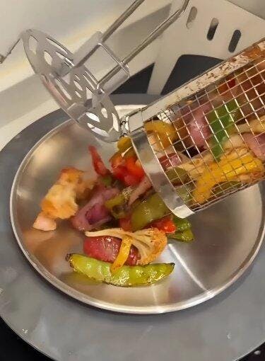Questa gabbia per barbecue è adatta per grigliare un'ampia varietà di alimenti, tra cui carne, gamberi e verdure.