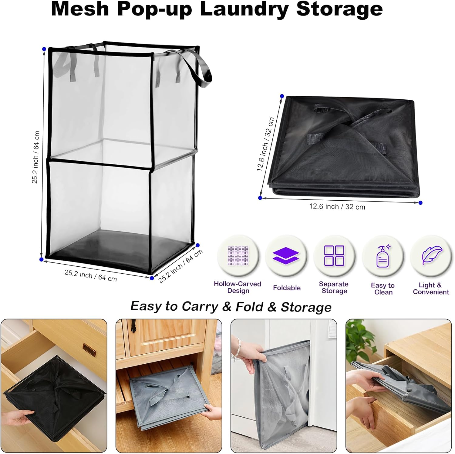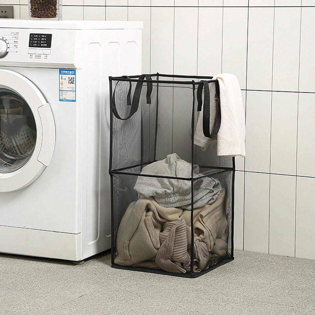 Cesto per biancheria pieghevole in rete
