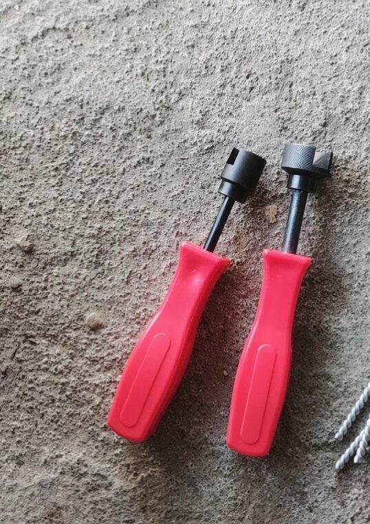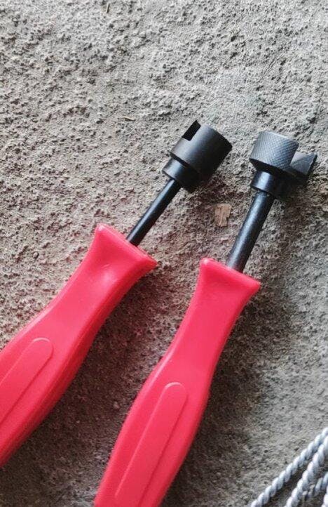 Questo strumento riduce lo sforzo fisico nella compressione delle molle dei freni. Il design ergonomico e il sistema a leva permettono una compressione fluida e controllata con il minimo sforzo manuale.