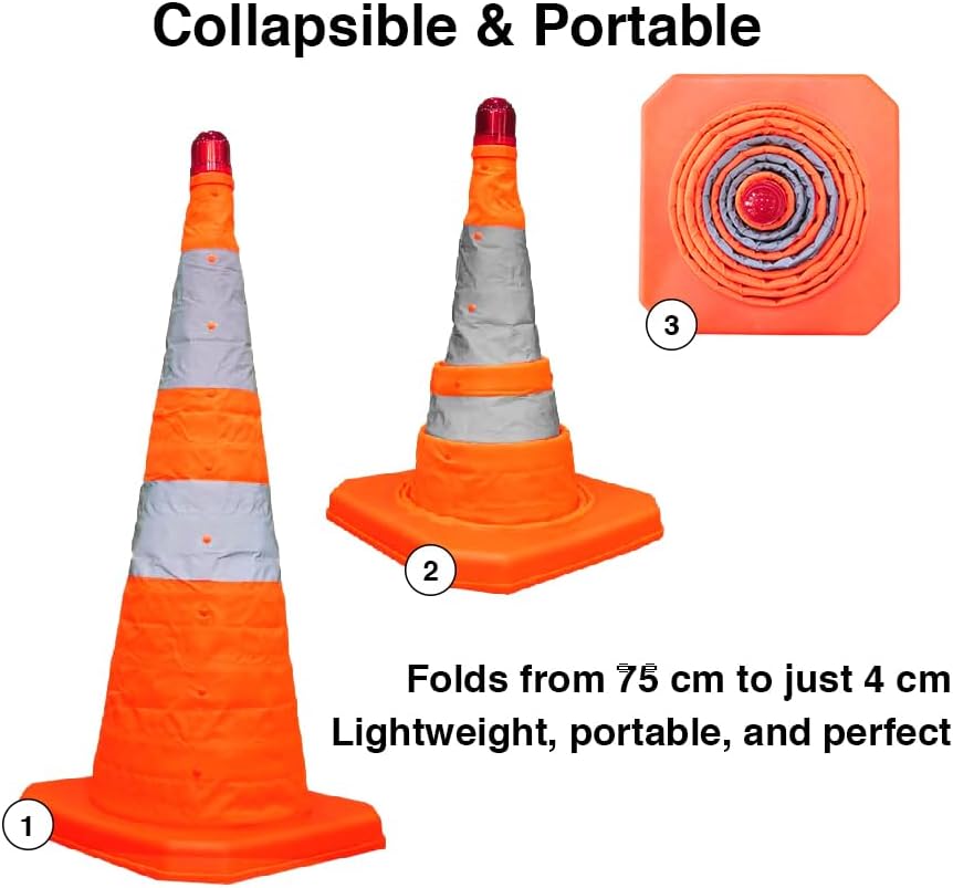 Grazie al design collassabile, questi coni di sicurezza possono essere ripiegati fino a diventare piatti, facilitando lo stoccaggio e il trasporto