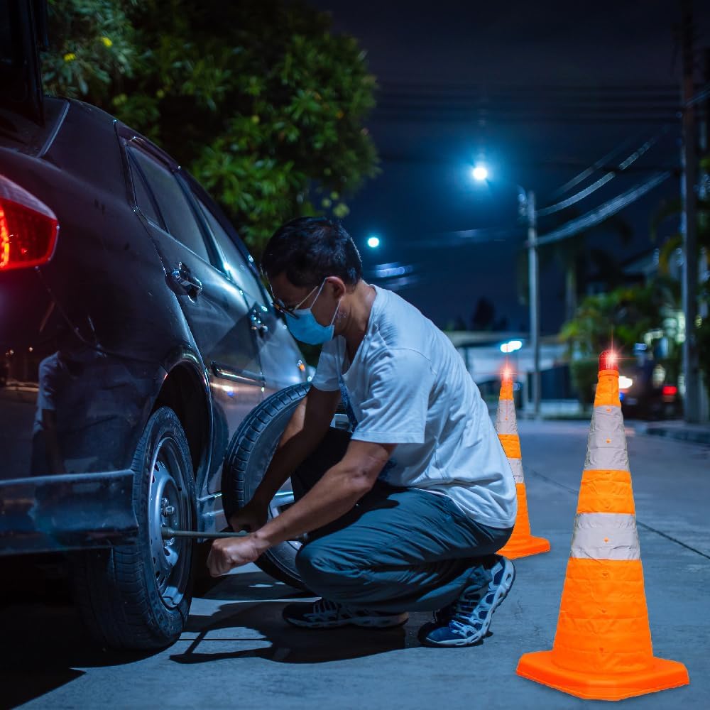 Dotati di una luce di avvertimento integrata, questi coni offrono maggiore visibilità in condizioni di scarsa illuminazione o notturne