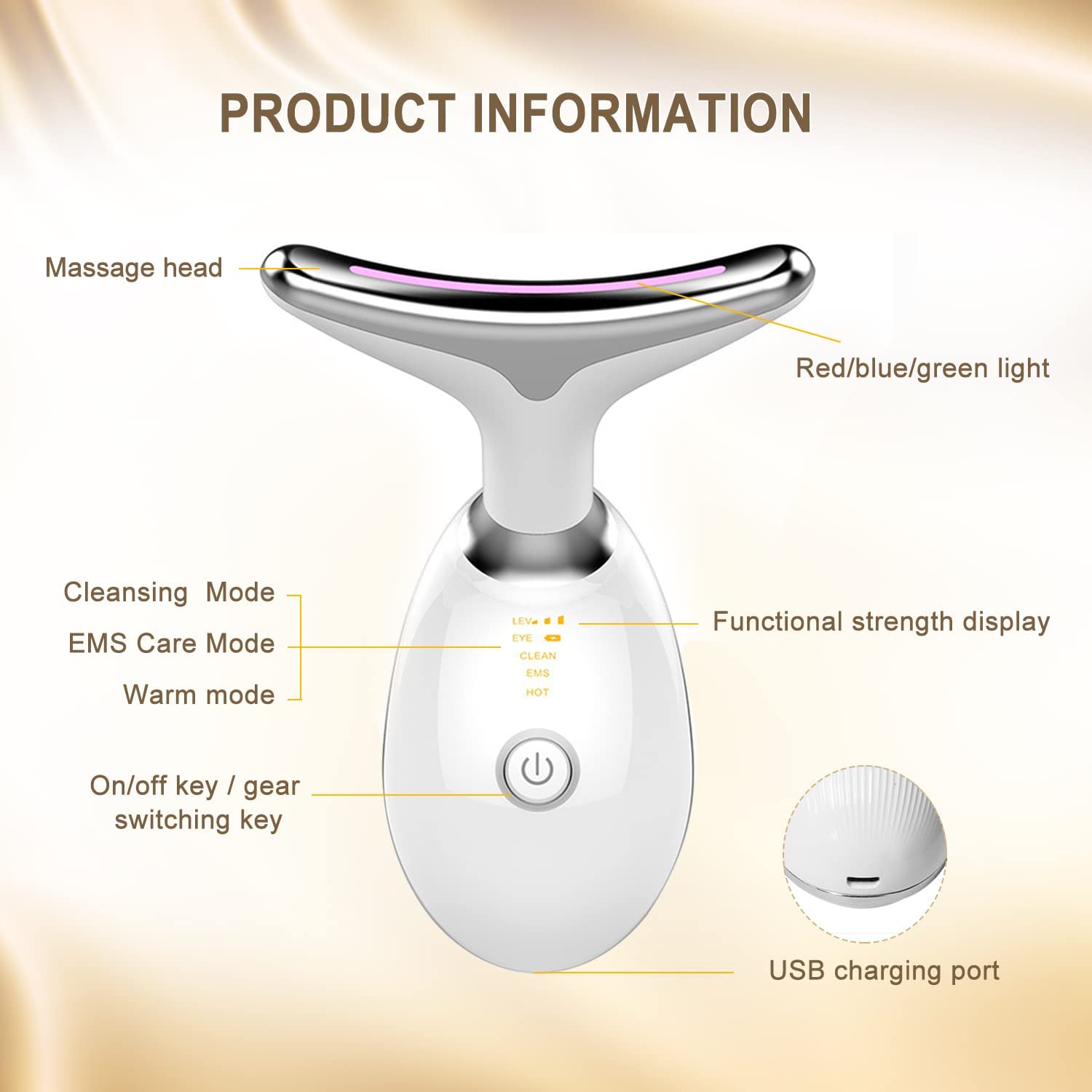 Combinando il calore stabile a 45°C con la tecnologia della luce colorata, aiuta ad aumentare la circolazione sanguigna, a levigare e rassodare la pelle del collo, favorisce un rilassamento profondo, rigenera le cellule e ringiovanisce la pelle.