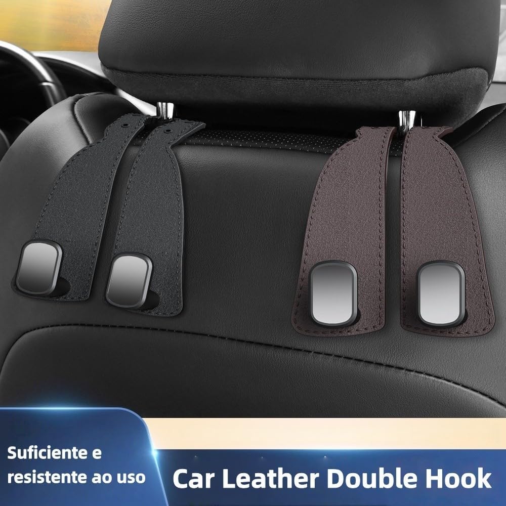 【Gancio doppio per schienale del sedile dell'auto - Gancio in pelle scamosciata】 - Il gancio per poggiatesta in morbida pelle si adatta meglio al sedile dell'auto, trasformando il poggiatesta in un comodo spazio di archiviazione per riporre generi alimentari, vestiti, borse, cappelli, ecc., lasciando ai passeggeri spazio posteriore.