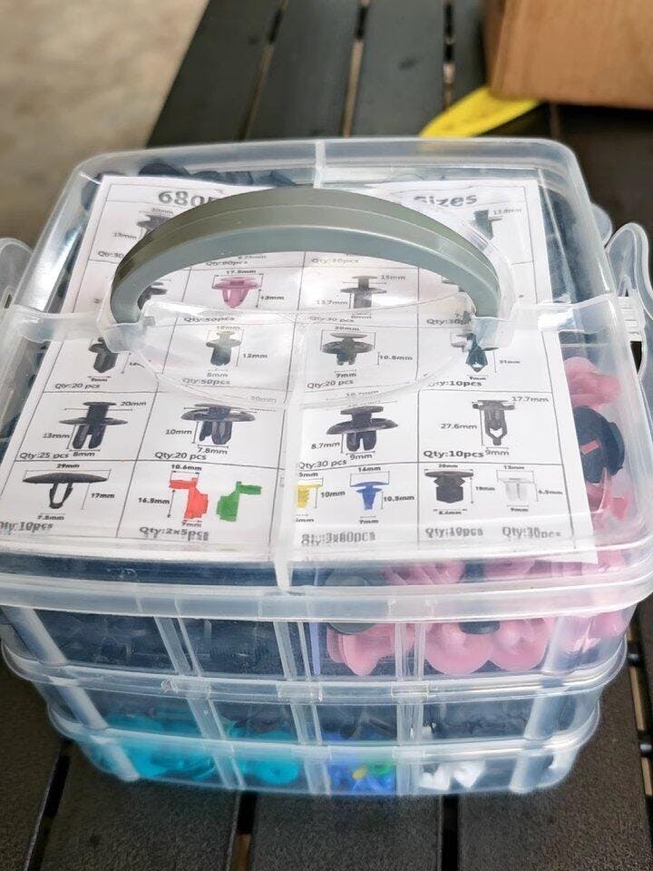 Il set include 680 clip di fissaggio con oltre 20 diverse dimensioni, adatte a molte parti dell’auto come: porte, paraurti anteriore, parafanghi, cruscotto…