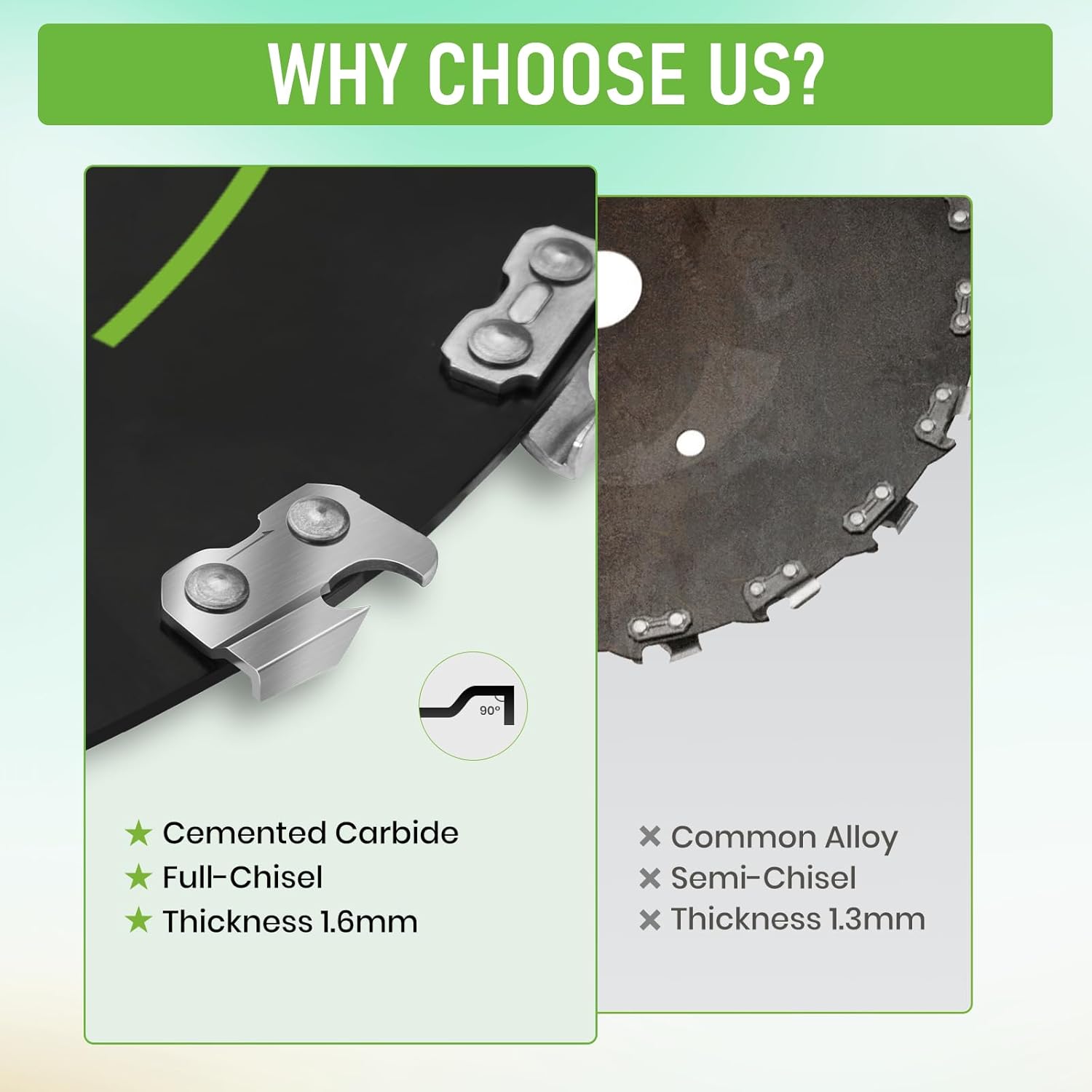La lama tipo motosega è posizionata tra due punti, garantendo un utilizzo sicuro per intaglio, scultura o taglio