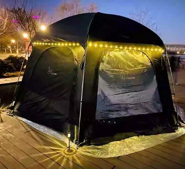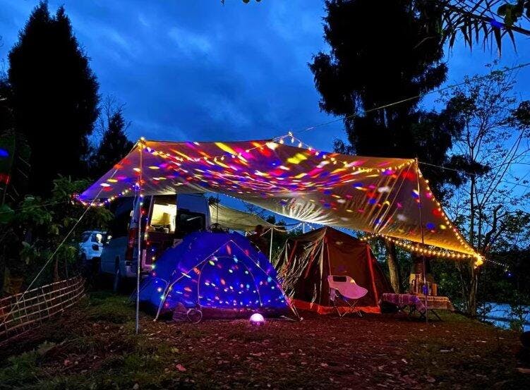 l'esclusiva attrezzatura da campeggio combina luce da campeggio e luci a catena con 2 interruttori separati per il controllo.