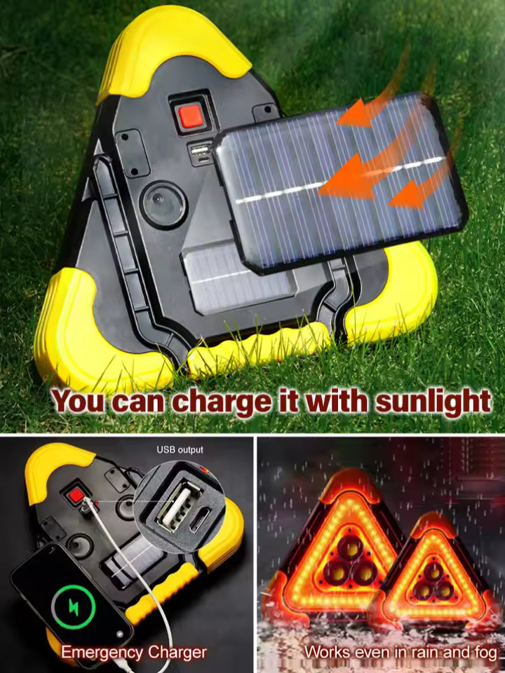 Ricarica, illuminazione e emergenza: tutto in un’unica luce triangolare