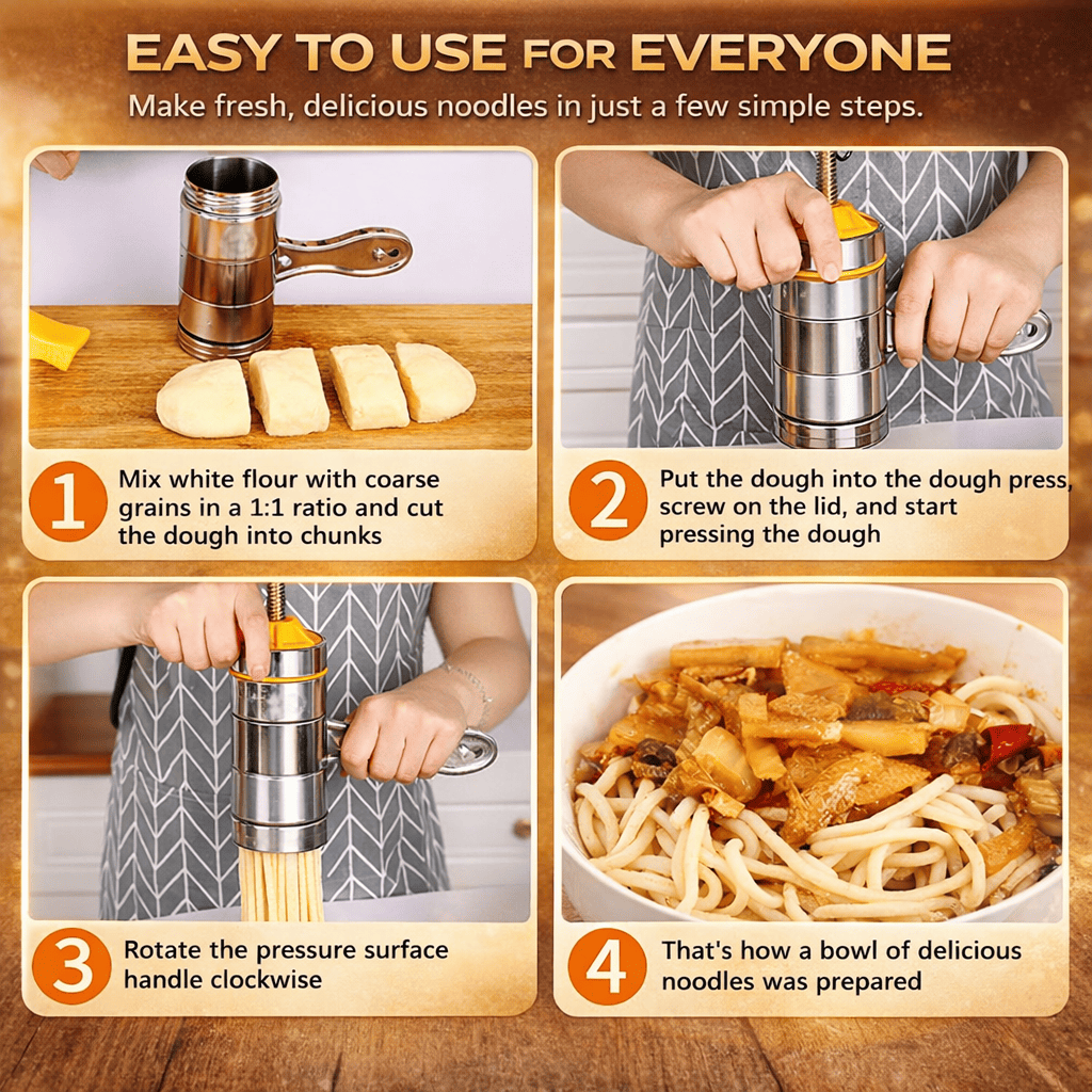 Manovella ergonomica progettata per il massimo comfort — prepara i noodles facilmente senza affaticare le mani.