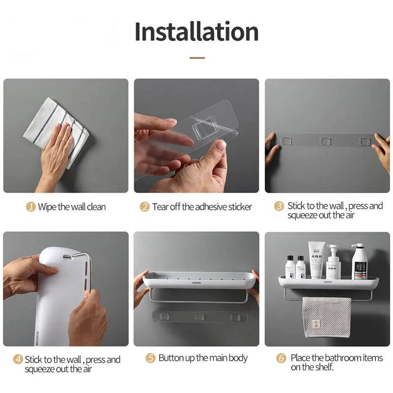 Il ripiano è progettato in modo intelligente con una forte adesione, senza bisogno di trapano o viti. Protegge la parete e risparmia tempo nell’installazione.