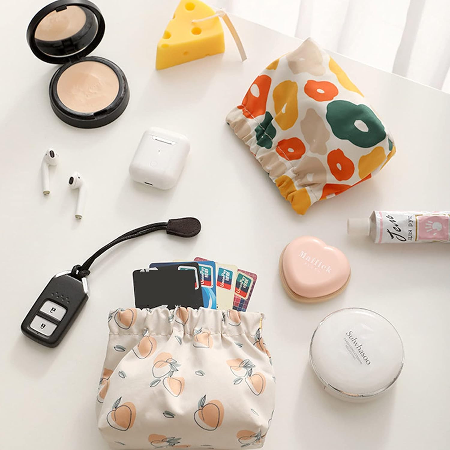 Questo prodotto è facile da usare e comodo; puoi usarlo per riporre rossetto, assorbenti, caricabatterie e auricolari. Lo consiglio vivamente!