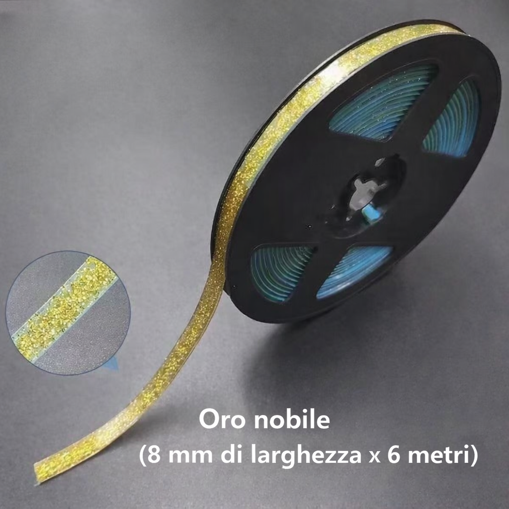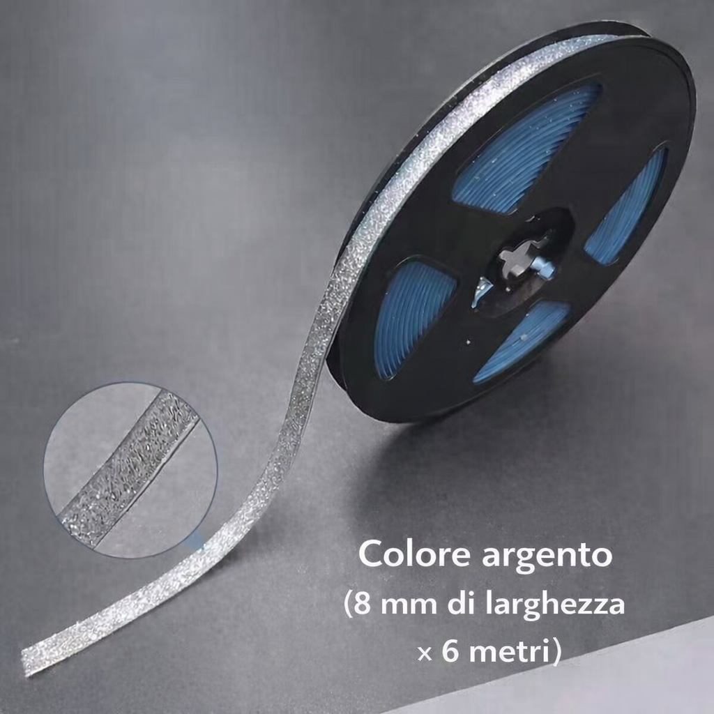 Dimensioni: Lunghezza circa 6 m (rotolo), Larghezza circa 0,8 cm. È possibile tagliare questo nastro adesivo in qualsiasi dimensione e lunghezza per soddisfare le proprie esigenze! Mantenere la parete pulita prima di incollare.