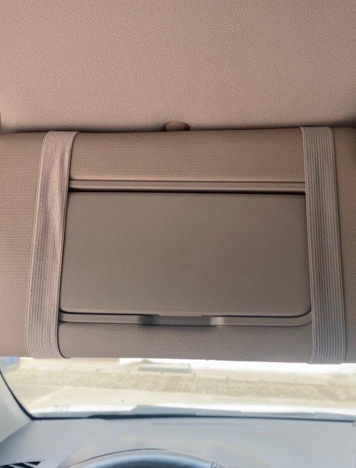 Si adatta perfettamente all'auto originale, è facile da installare, non copre lo specchietto e può contenere molti oggetti. Può contenere molti piccoli oggetti, molto comodo