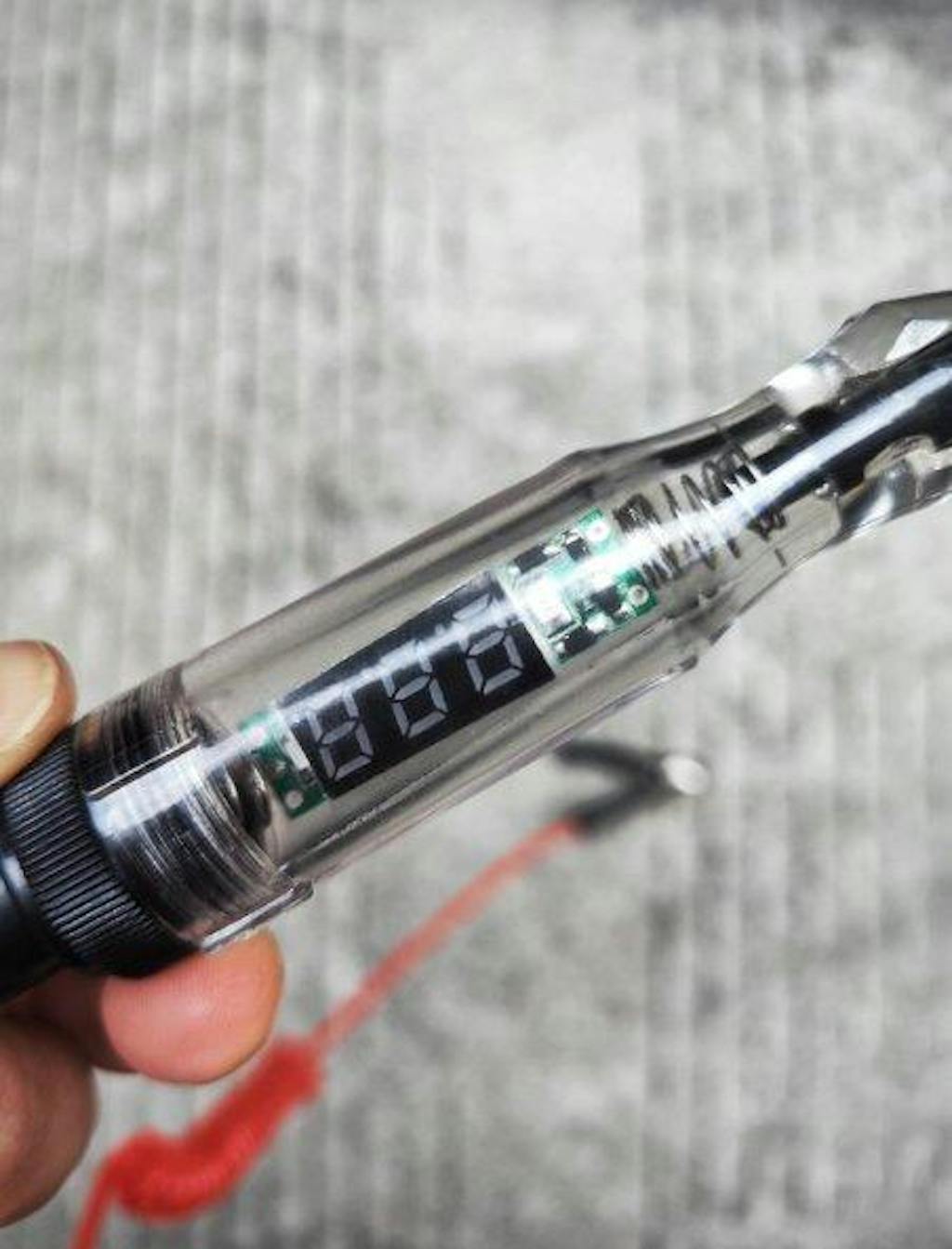 Il display digitale a LED fornisce letture precise della tensione con una chiara visualizzazione sia di giorno che di notte. La luce sull'impugnatura si accende quando il collegamento del circuito è completato. Se la luce è accesa, significa che c'è corrente.