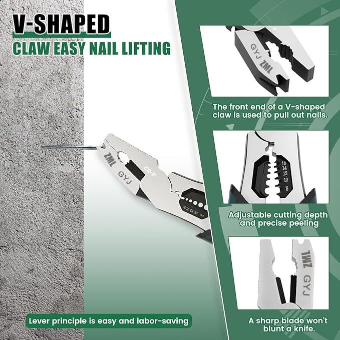 Pinza spelafili 6-in-1, in acciaio CR-V per un taglio potente, integra spelatura/taglio/trazione, efficiente per la manutenzione elettrica