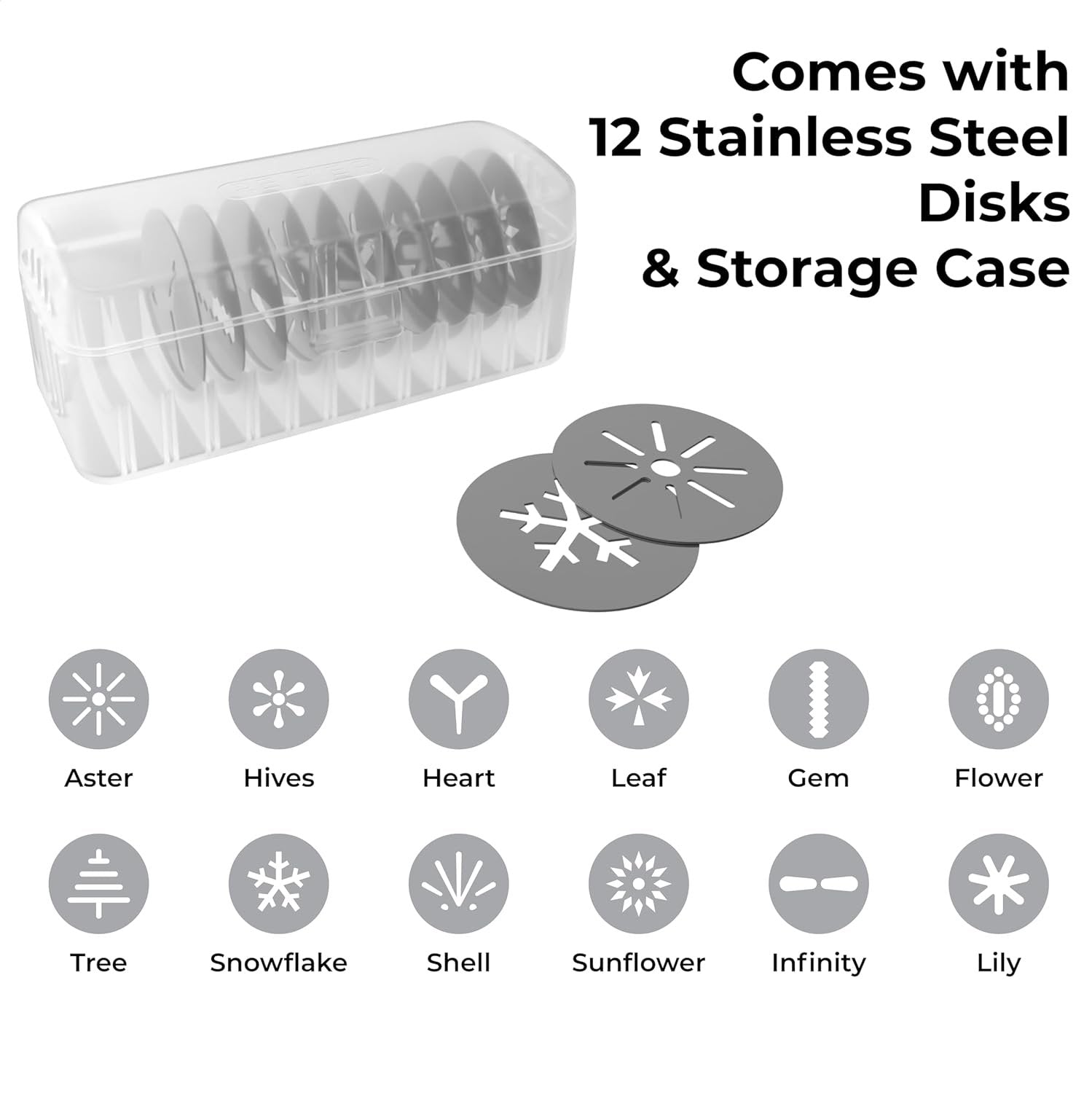 Trasforma la preparazione dei dolci di tutti i giorni in un’esperienza divertente e senza stress con la pressa per biscotti in acciaio inox a 13 dischi.