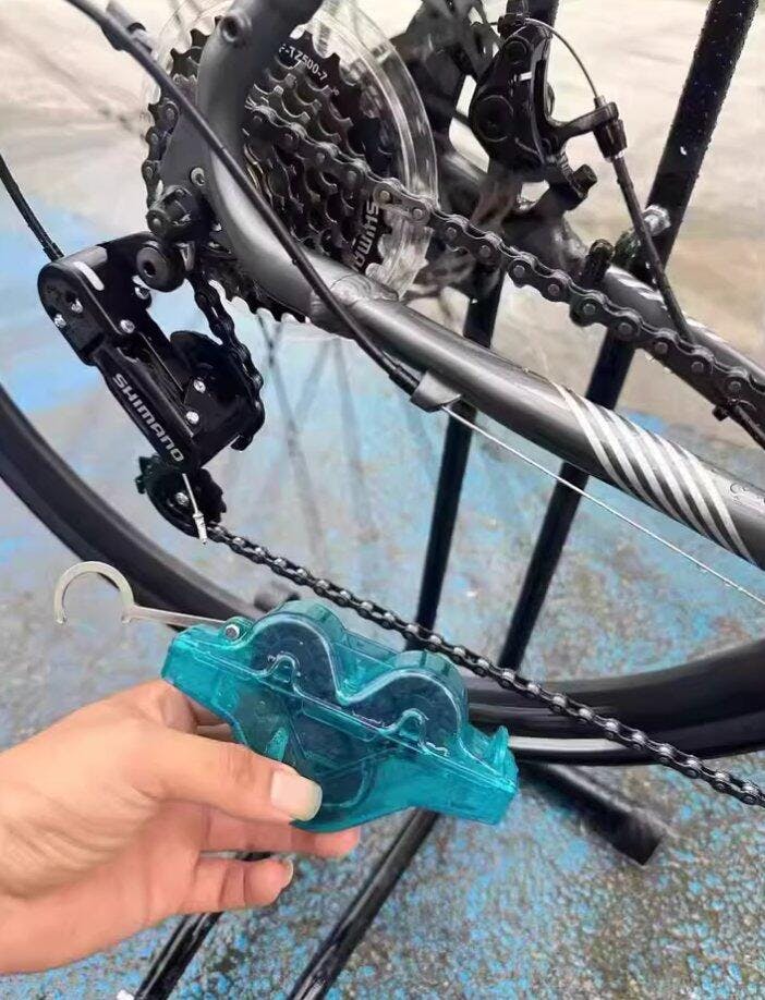 Con questo pulitore per catena, pulire la catena è un gioco da ragazzi — niente più mani sporche!