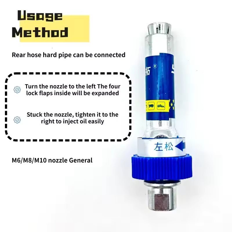 L’innesto si fissa saldamente al punto di lubrificazione senza scivolare durante l’uso.