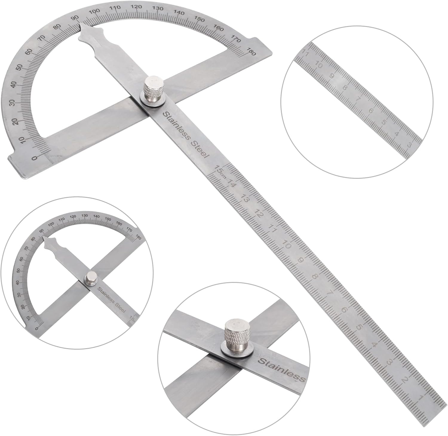 È possibile stringere la vite per fissare il righello mobile, quindi è possibile disegnare, segnare e misurare lo stesso angolo o lunghezza in modo continuo