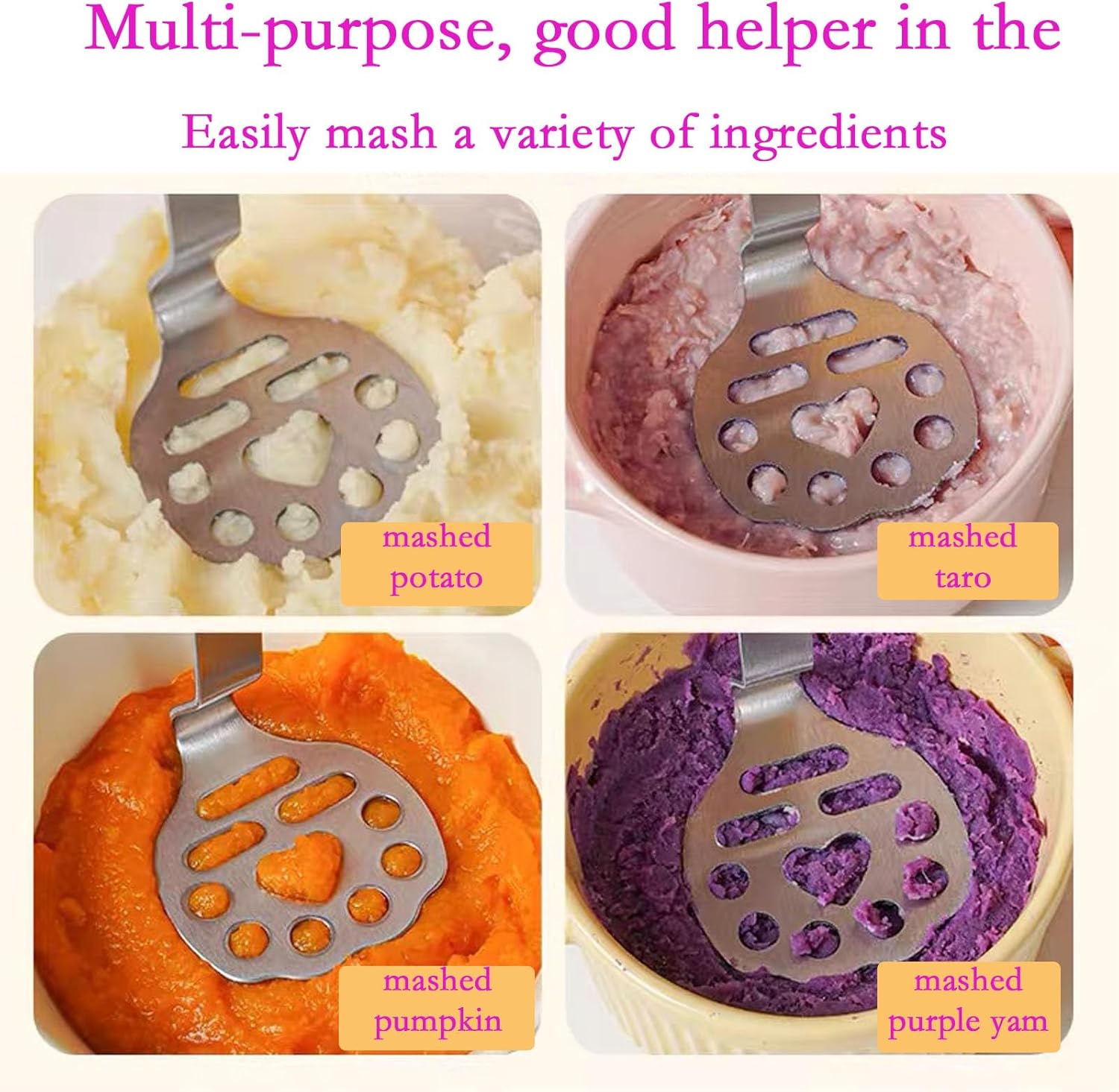 - MULTIFUNZIONALE: Questo schiacciapatate è adatto per schiacciare una varietà di alimenti come patate, frutta, verdura e molti altri usi in cucina.