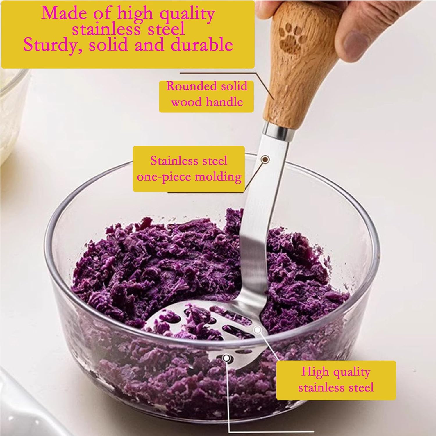 - ROBUSTO E AFFIDABILE: Realizzato in legno e acciaio inossidabile, robusto e affidabile, questo schiacciapatate può essere utilizzato frequentemente senza rompersi o piegarsi. Purè di patate, carne e schiacciapatate.