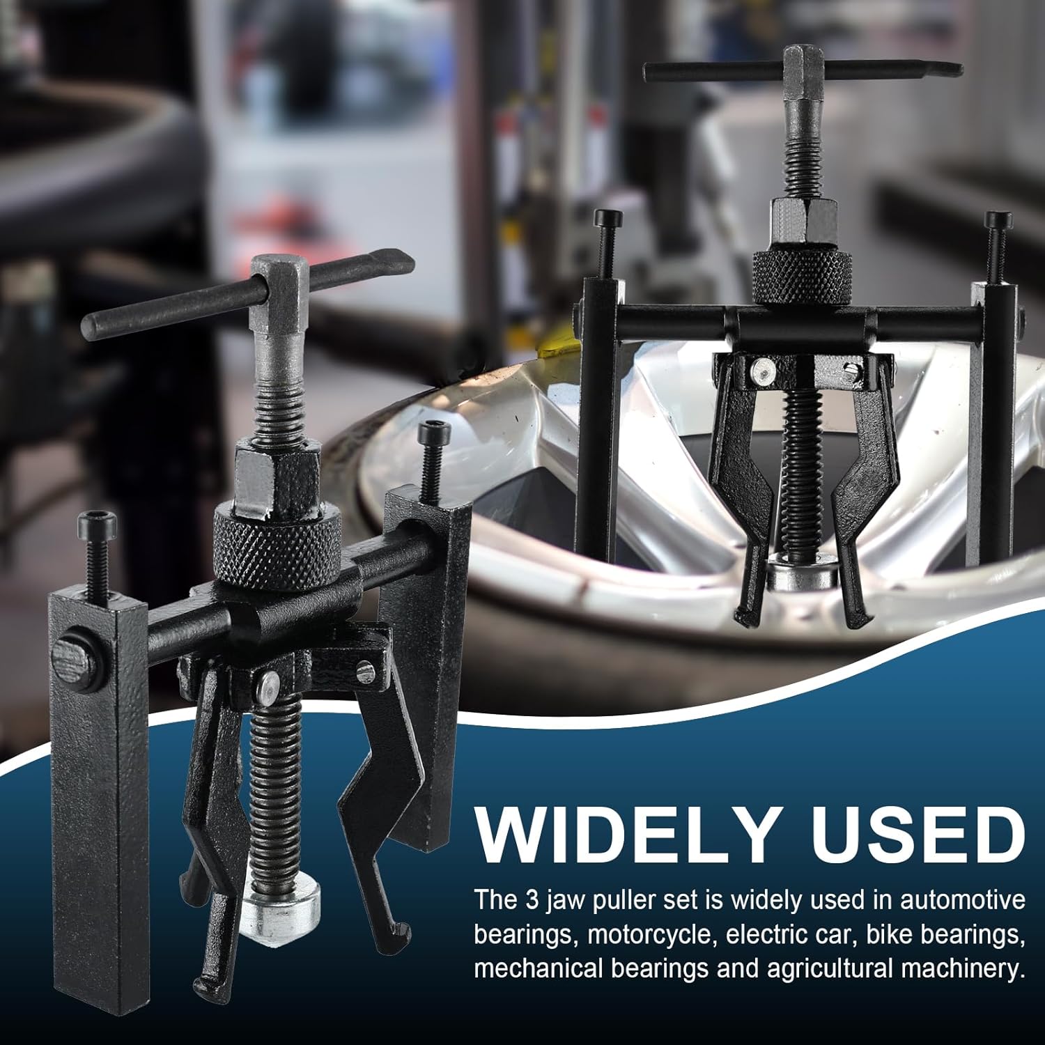 Il set di estrattori a 3 ganasce è uno strumento ideale per estrarre mozzi, flange, ingranaggi, pulegge, volani, cuscinetti e mandrini dagli alberi.