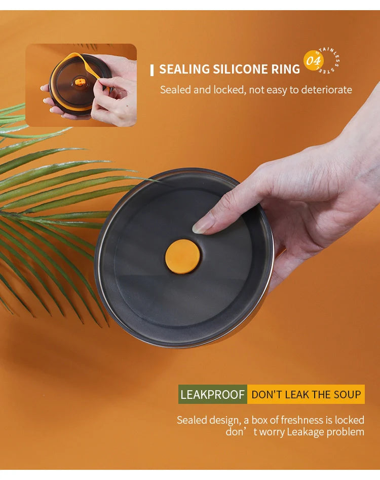 Queste scatole rotonde antibatteriche in acciaio inossidabile con coperchio sottovuoto sono resistenti e facili da trasportare ovunque, rendendole ideali per lavoratori, studenti e turisti. Sarà un'ottima scelta per portare il pranzo o il cibo in ufficio, a scuola o in viaggio.