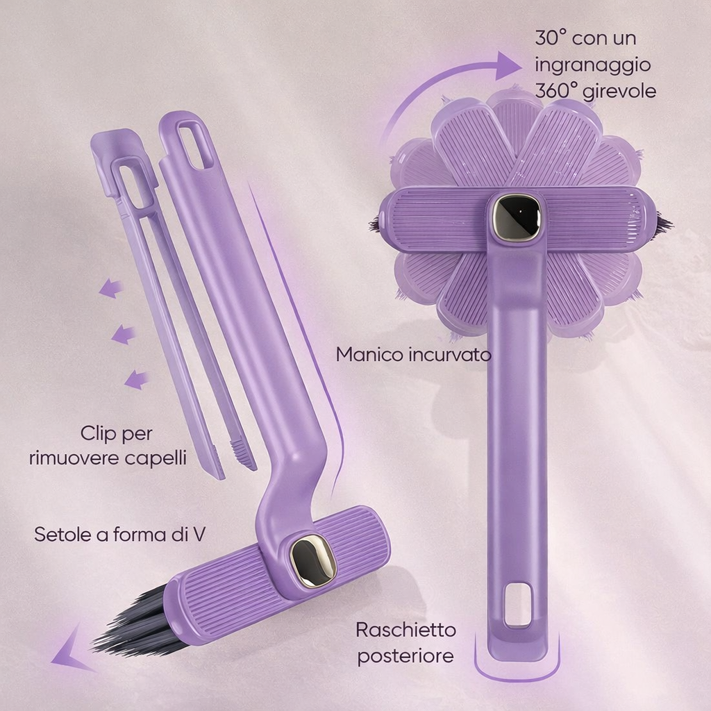 La spazzola rotante multifunzione è progettata per rendere la pulizia più facile ed efficace.