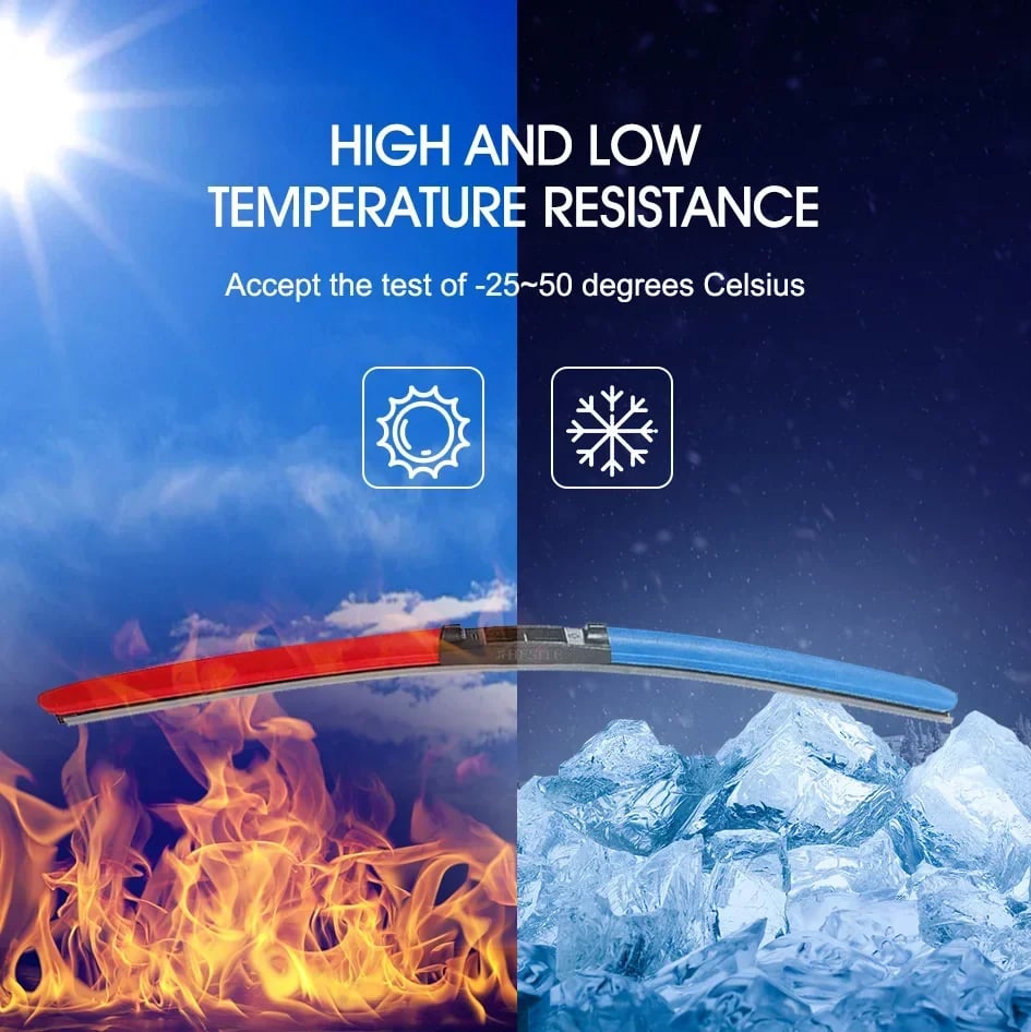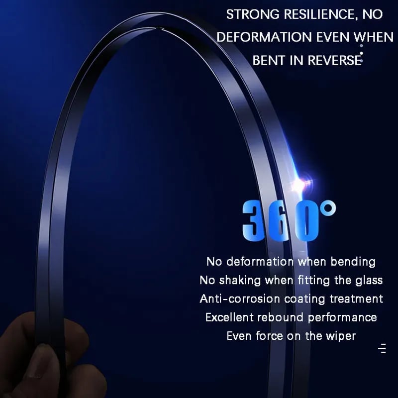 Gli strati di gomma multifunzionali rimuovono efficacemente fango, olio, sporco e acqua, mantenendo il parabrezza impeccabile per un’esperienza di guida più sicura e senza interruzioni