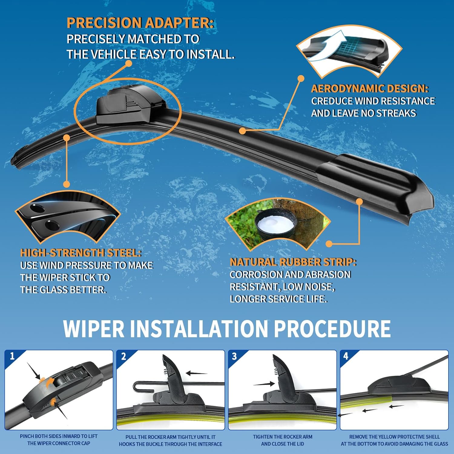 Offre un profilo elegante e aerodinamico che aderisce perfettamente al parabrezza per una pulizia fluida e senza striature in tutte le condizioni atmosferiche, migliorando visibilità e sicurezza.