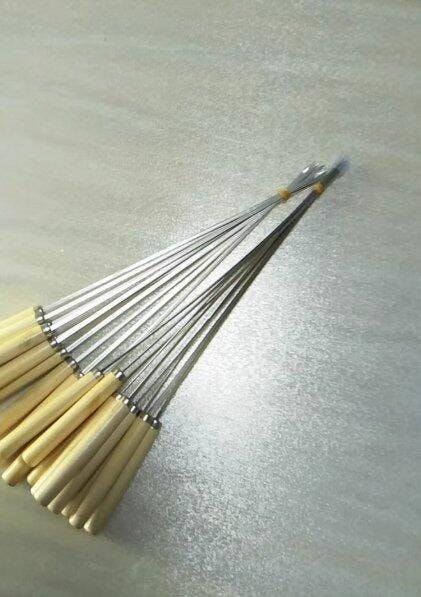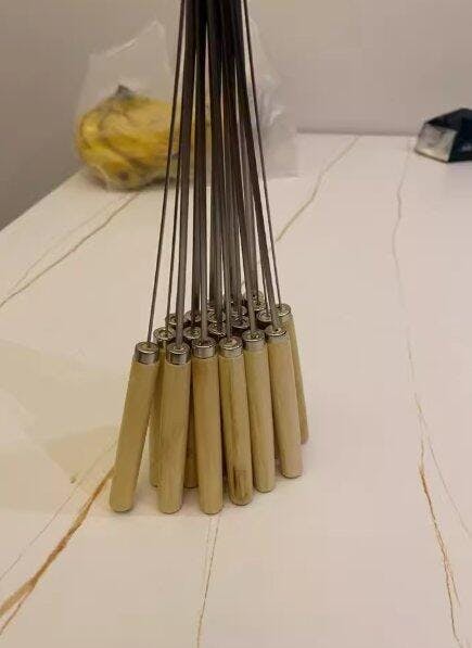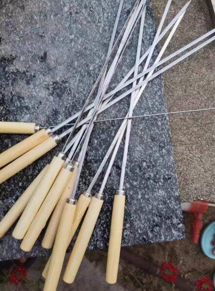 Questi spiedini sono molto utili; i manici in legno sono comodi e più facili da usare rispetto ai soliti in metallo. Sono di buona qualità e piuttosto pesanti. Soprattutto, hanno un ottimo rapporto qualità-prezzo. Ho intenzione di comprarne altre decine da usare nel tempo.