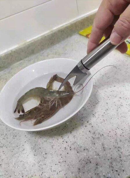 È arrivato lo svenatore multiuso per gamberi. Consegna veloce e servizio ottimo. Questo svenatore per gamberi è molto pratico; lo tengo sempre in cucina e lo uso spesso. Sventrare i gamberi è ormai un'esperienza piacevole. È facile da usare e confeziona i gamberi velocemente, risparmiandomi un sacco di fatica.