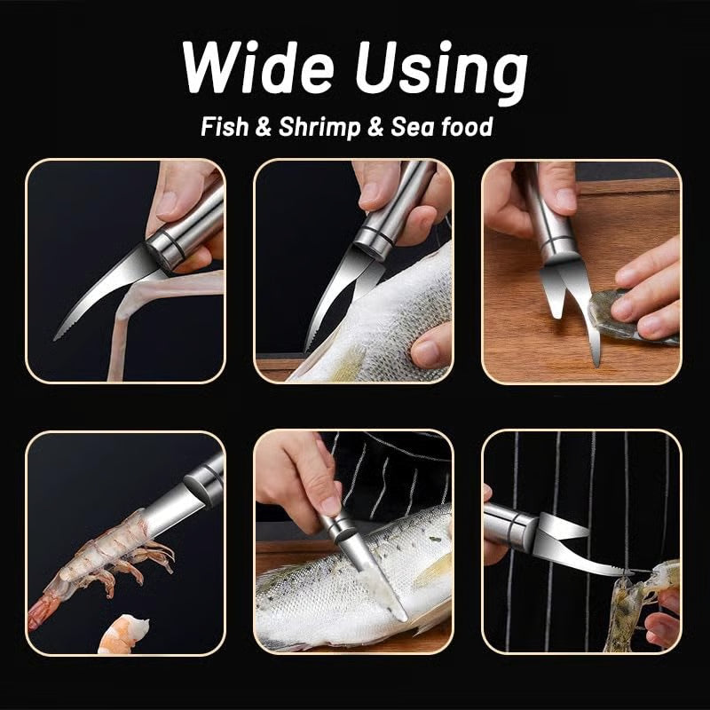 La lama è affilata, perfetta per preparare frutti di mare, pesce, ecc. Sguscia rapidamente e perfettamente i gamberetti, apre la bocca del pesce, rimuove le squame e sbuccia gli intestini di anatra/pollo/maiale senza distruggerli.