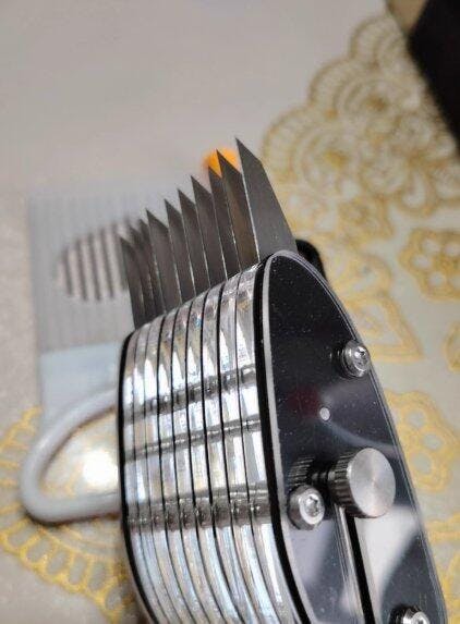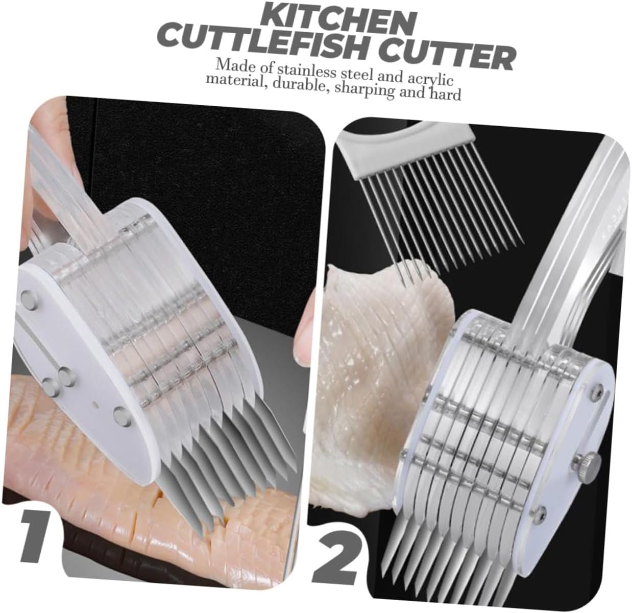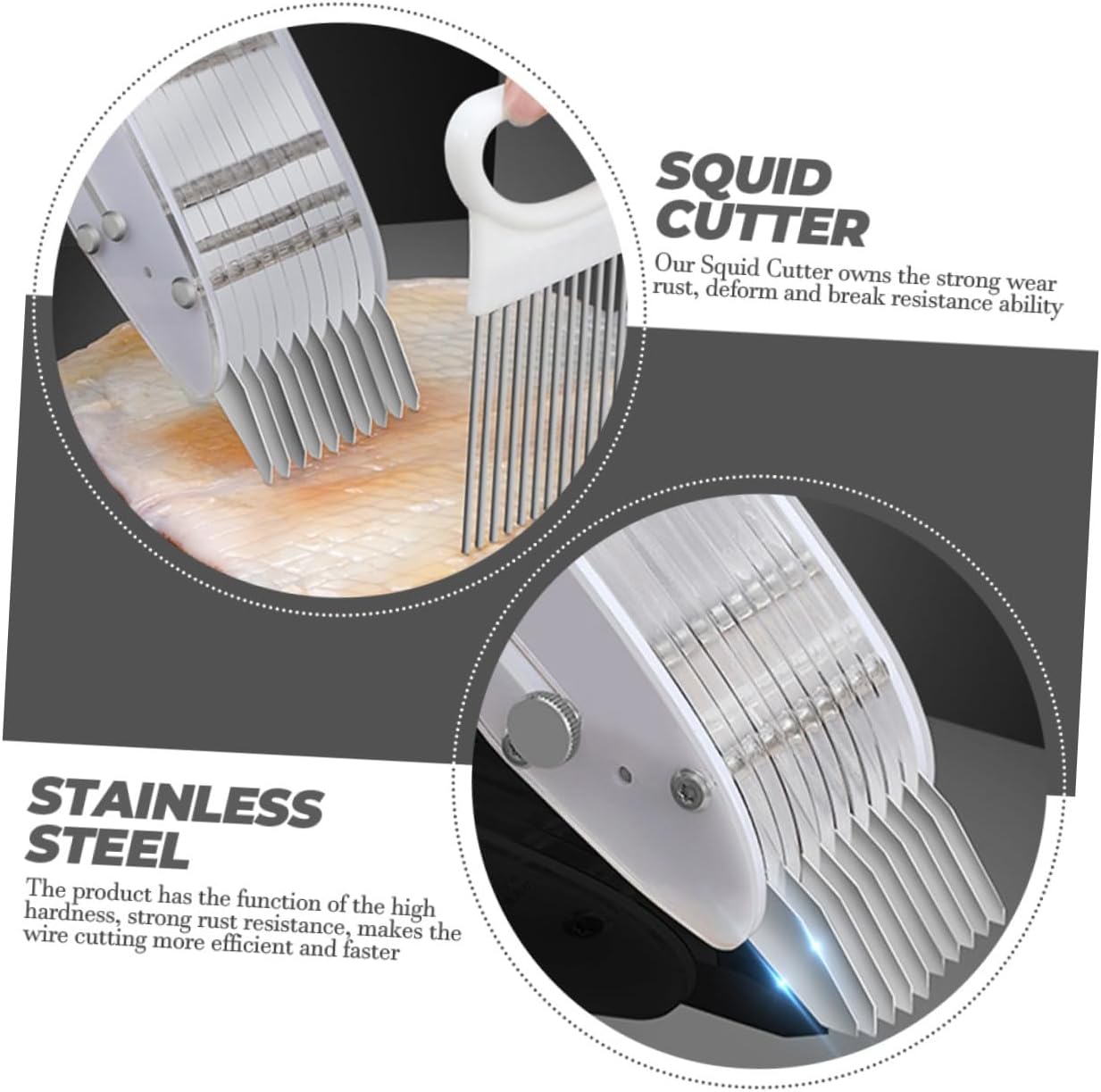Innovativo tagliatore per calamari con spessore di taglio uniforme ed eccellente effetto di taglio, che consente di completare facilmente la preparazione degli ingredienti, migliorando notevolmente la praticità del lavoro in cucina.