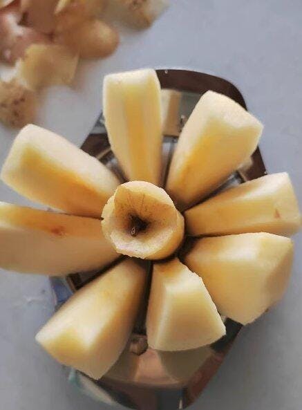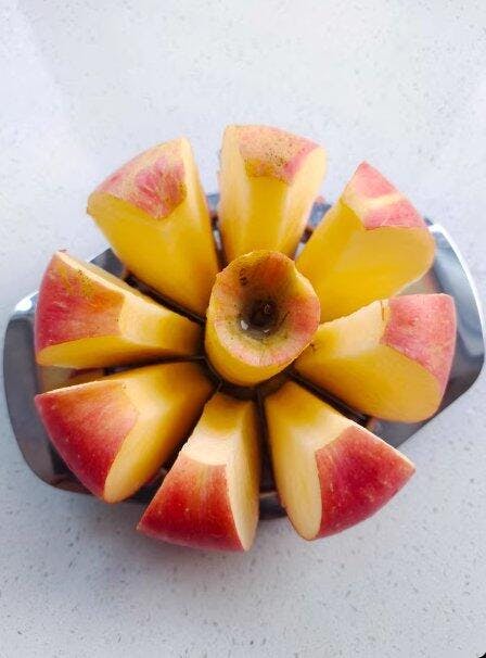 Ottieni fette perfettamente regolari ogni volta, rendendo i tuoi piatti più belli da vedere e facili da servire. Che tu stia preparando un vassoio di frutta o aggiungendo fette di mela a un’insalata, le fette uniformi garantiscono un risultato professionale
