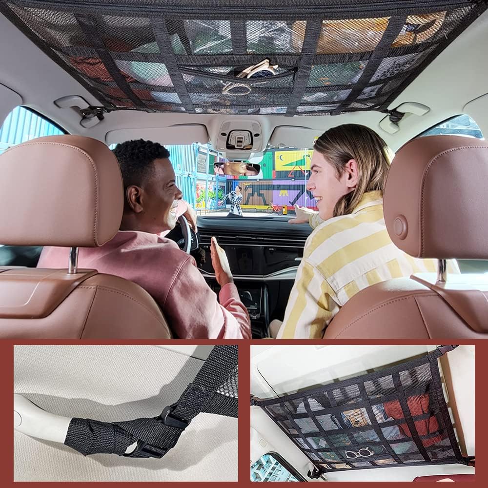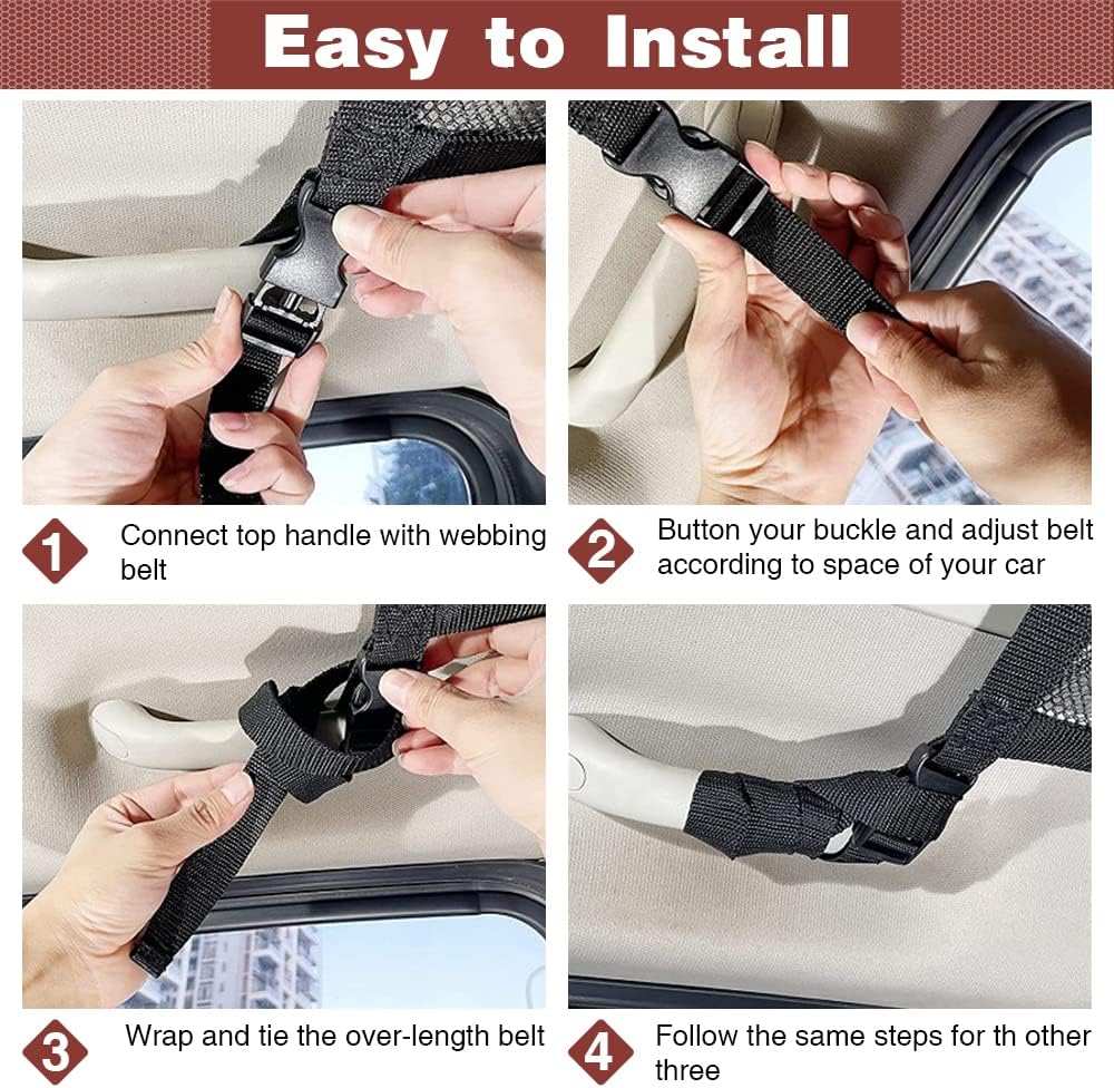 La borsa portaoggetti da soffitto è dotata di 4 fibbie di fissaggio per fissarla al vano portaoggetti dell'auto. Basta afferrare le fibbie fisse e fissarla saldamente. Inoltre, è sufficientemente robusta da sostenere oggetti comuni senza danneggiarli.