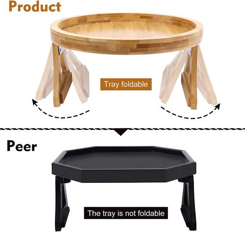 Vassoio per bracciolo del divano in legno con clip, installazione/smontaggio super veloce