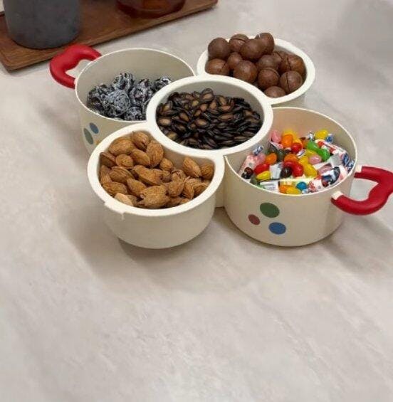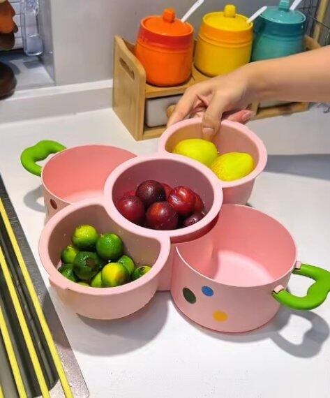 Il design girevole è molto apprezzato dai bambini. Può essere utilizzato come contenitore per alimenti e come decorazione da tavola.